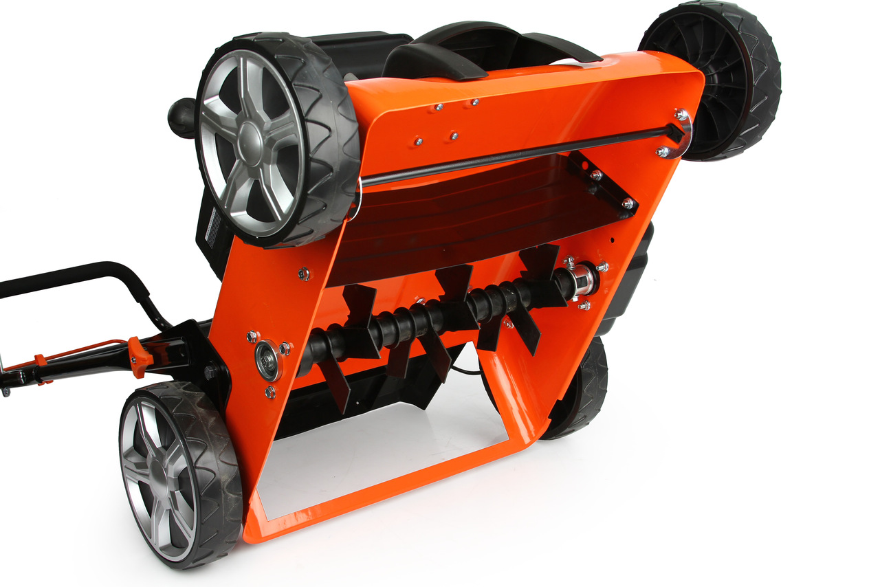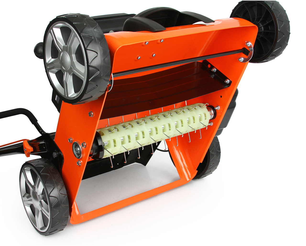 bez-narzędziowe oparte o szybko-zamykacze i klamry. Wyposażony w wałek z nożami do wentylacji i wałek z drutami stalowymi do aeracji.