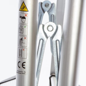Zawiasy wykonane są ze stali ocynkowanej. Poprzez zastosowanie takiego rozwiązania drabinę można bardzo szybko i wygodnie złożyć i rozłożyć. Ergonomiczne wymiary złożonej drabiny ułatwiają transport oraz przechowywanie nawet w najmniejszych pomieszczeniach.