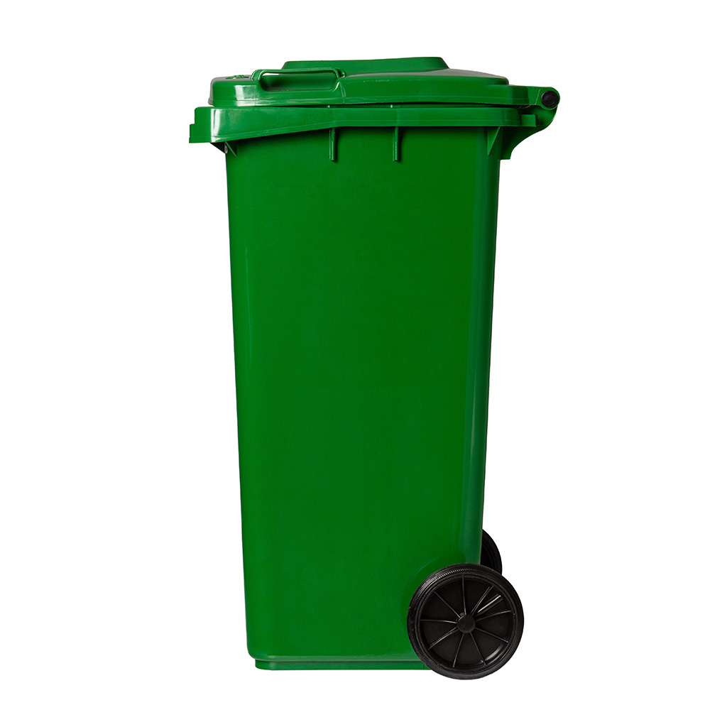 ✅Kosz na śmieci, pojemnik 120L, kubeł, śmietnik, zielony, odpady zmieszane, gumowe koła