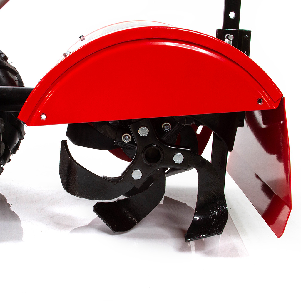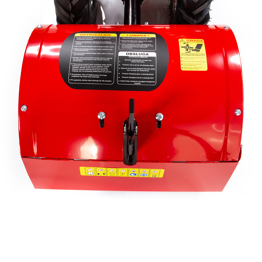 Bezpieczeństwo pracy zapewnia uchylna osłona noży spulchniających.