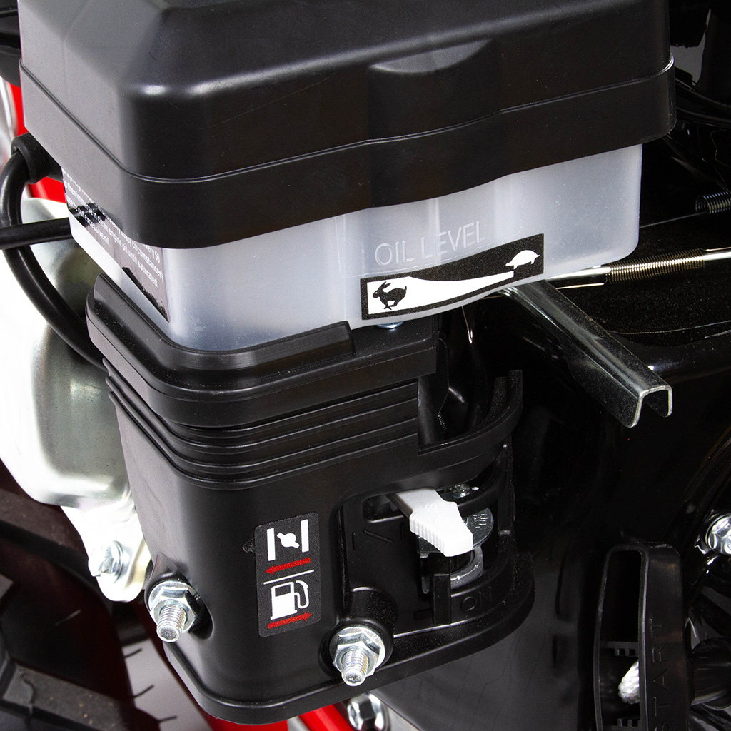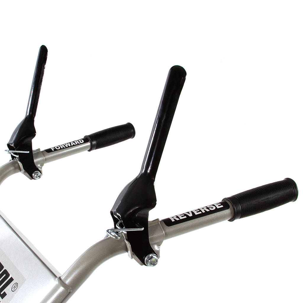 Glebogryzarka DEMON®️ wyposażona jest w dźwignię regulatora głębokości roboczej – niżej = Mniejsza głębokość pracy