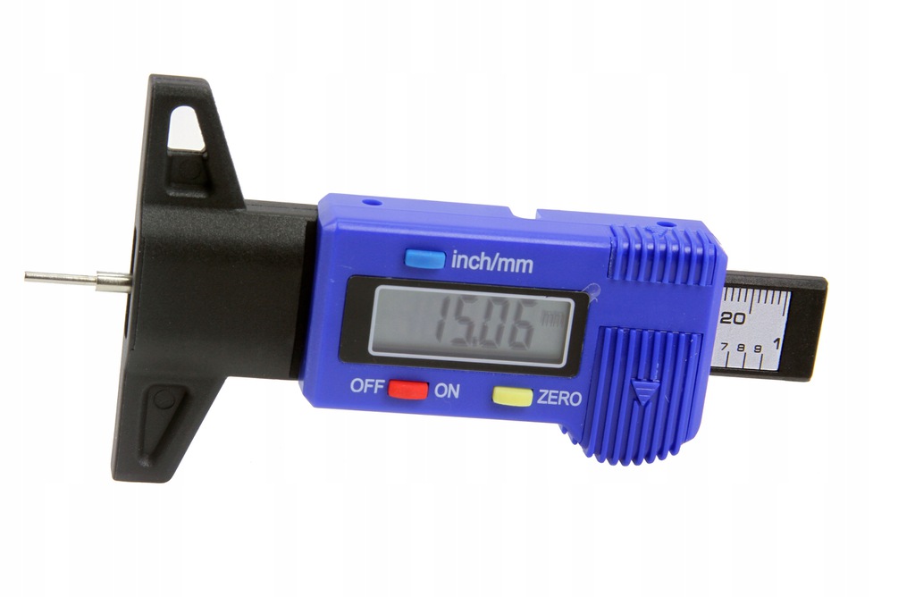 yfrowy miernik wysokości bieżnika, niezbędny przy ocenianiu stopnia zużycia opon. Miernik niezbędny w wulkanizacji, warsztacie samochodowym, potrzebny przy każdym samochodzie. Służy między innymi do: