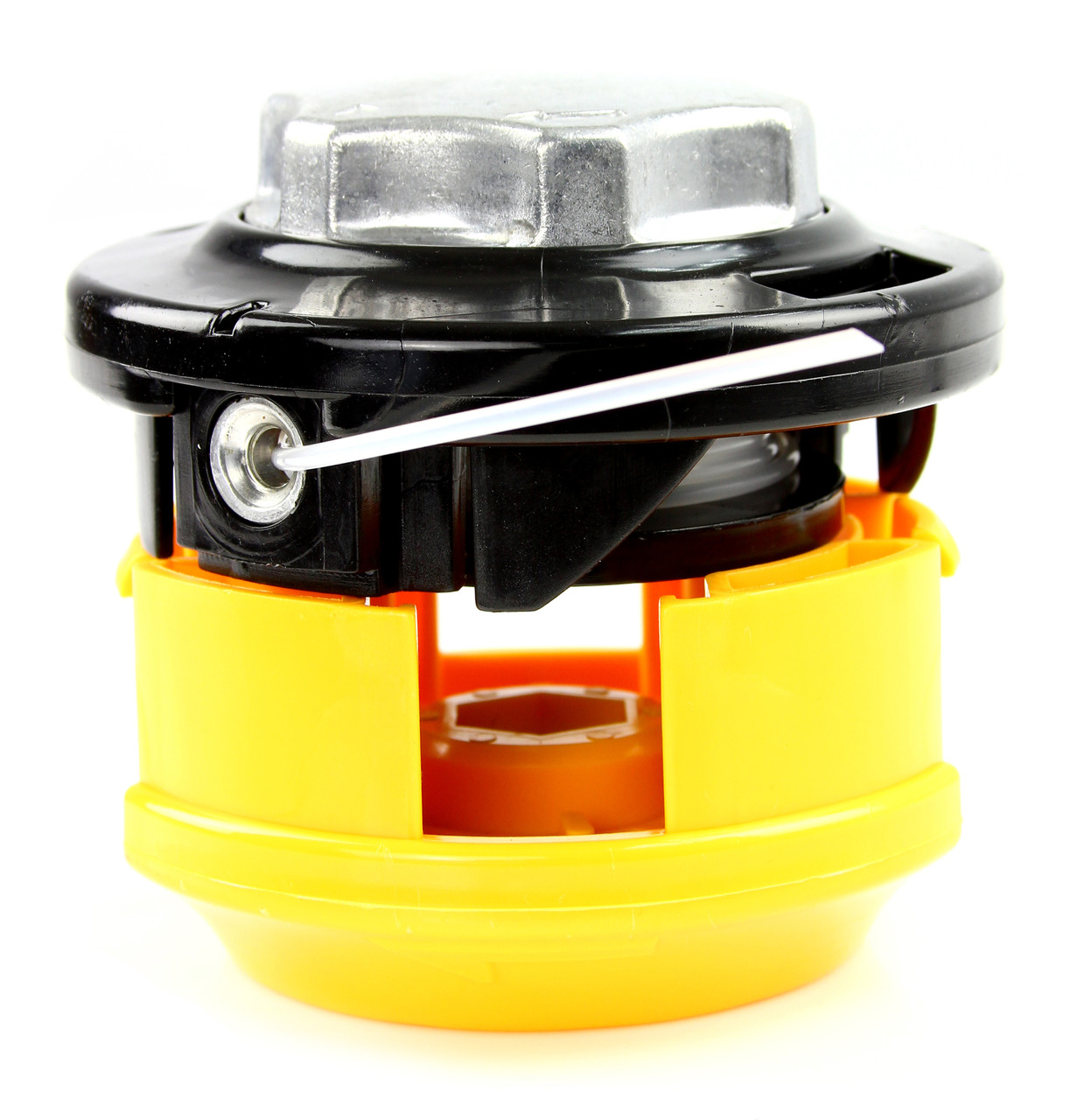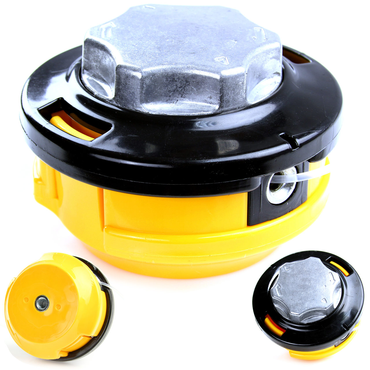 Uniwersalna głowica półautomatyczna pasująca do większości kos i podkaszarek spalinowych. Głowica umożliwia zamontowanie żyłki o średnicy od 1,5 do 3 mm. W komplecie żyłka o okrągłym profilu i średnicy 2 mm. Zwiększona grubość pokrywy i szpuli w miejscu gdzie mają one kontakt z podłożem, gwarantuje większą wytrzymałość. Mocowanie: śruba z lewym gwintem o średnicy 9mm (10mm na podkaszarce). Głowica półautomatyczna, aby wysunąć żyłkę należy uderzyć przyciskiem głowicy w podłoże