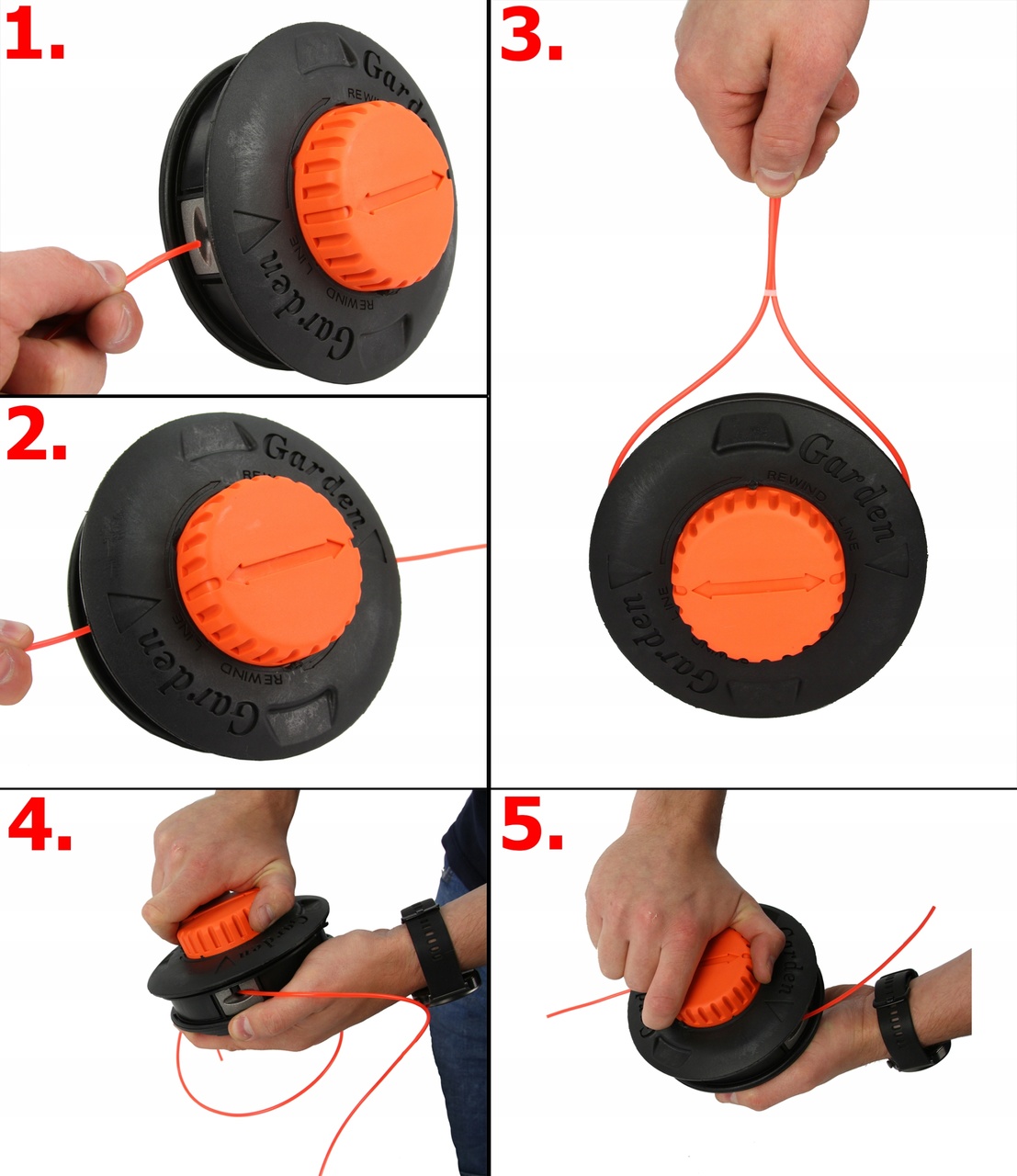 Łatwy system uzupełniania żyłki w głowicy – zakładanie żyłki bez rozmontowywania głowicy. ( Zdjęcie instruktarzowe ) systemu Easy – Load