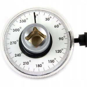 Kątomierz klucza dynamometrycznego 1/2″. Służy do dokręcania śrub i nakrętek z określonym naciągiem poprzez pomiar kąta obrotu.