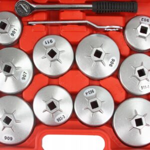 Klucze do odkręcania filtrów oleju w samochodach osobowych i dostawczych. Rozmiar nabity na miseczkach i walizce ułatwia porządek i szybki wybór żądanego rozmiaru. Wykonane z aluminium, odporne na korozje.