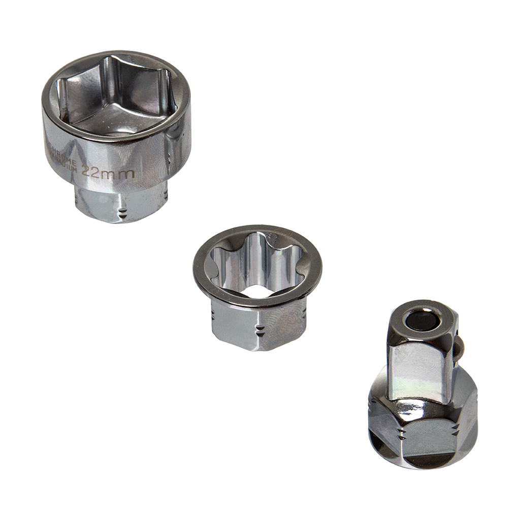 ➡️ 12 x wymienne 6-kątne nasadki: 8, 9, 10, 11, 12, 13, 15, 16, 17, 18, 21, 22 mm