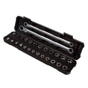 KLUCZE OCZKOWE DŁUGIE Z GRZECHOTKĄ 27ele. ŁAMANE NA PRZEGUBIE 8-22MM, TORX E8-E22 POKRĘTŁO
