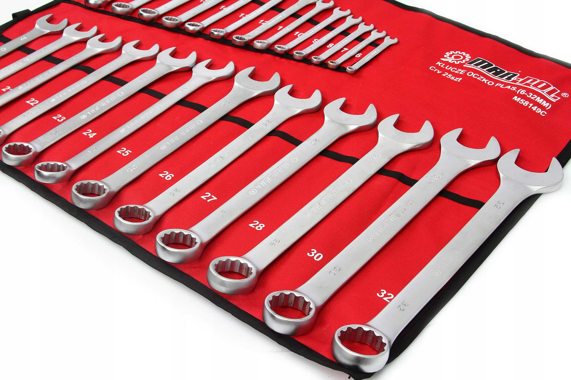 jak i w profesjonalnym warsztacie. Spełniają normy DIN 3113. Całość zapakowana została w wygodne zwijanie etui, dzięki czemu zajmuje
