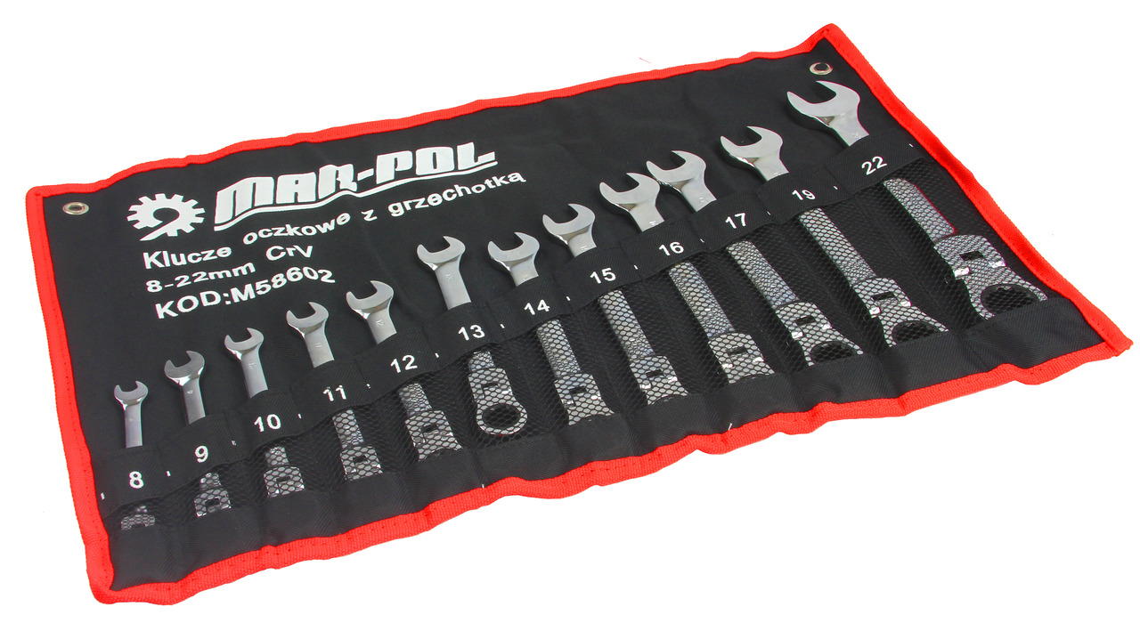 Zestaw kluczy płasko – oczkowych z GRZECHOTKĄ 12 el 8 – 22 mm