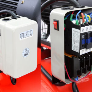 Wysokiej jakość stycznik.Styczniki są łącznikami mechanicznymi, których główne elementy stanowią: zestyki robocze, cewka oraz elektromagnes. Przy odpowiednio wysokim napięciu na cewce zestyki pozostają zamknięte, natomiast przy jego spadku dochodzi do opadnięcia zwory i otworzenia zestyków przez elektromagnes. Całość umieszczona w metalowej obudowie, z dodatkowym wyłącznikiem/włącznikiem klawiszowym na zewnątrz. Zapobiega on uszkodzeniu silnika poprzez samoczynne odcięcie zasilania jednej z faz..