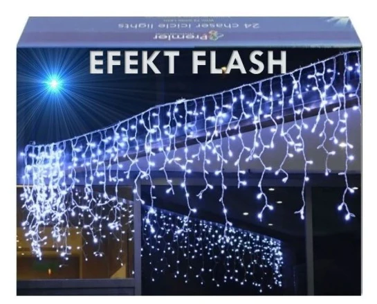 LAMPKI ŚWIĄTECZNE KURTYNA ŚWIETLNA SOPLE Z FLAH 500LED ZIMNY BIAŁY