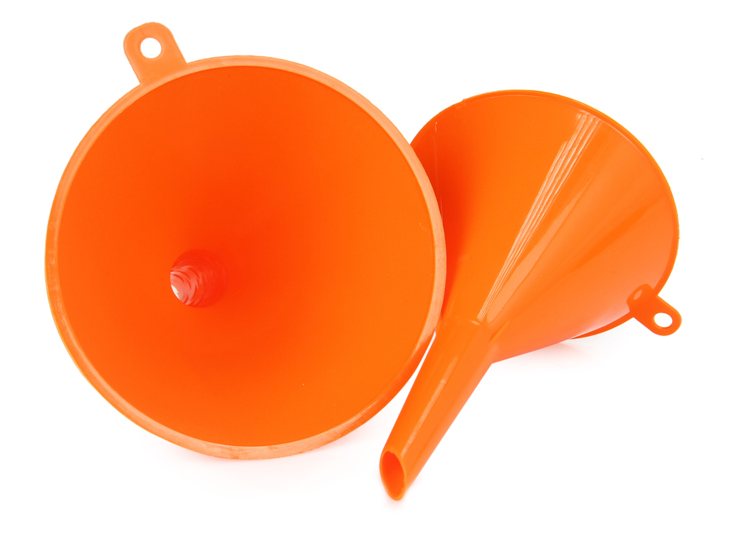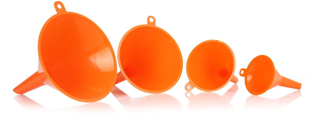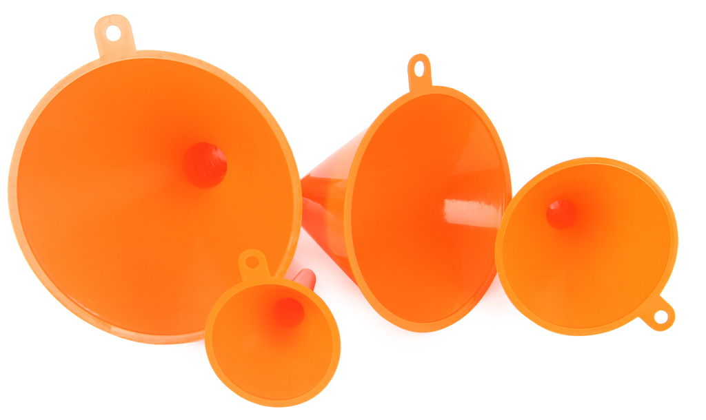 Lejki wykonane z tworzywa sztucznego.