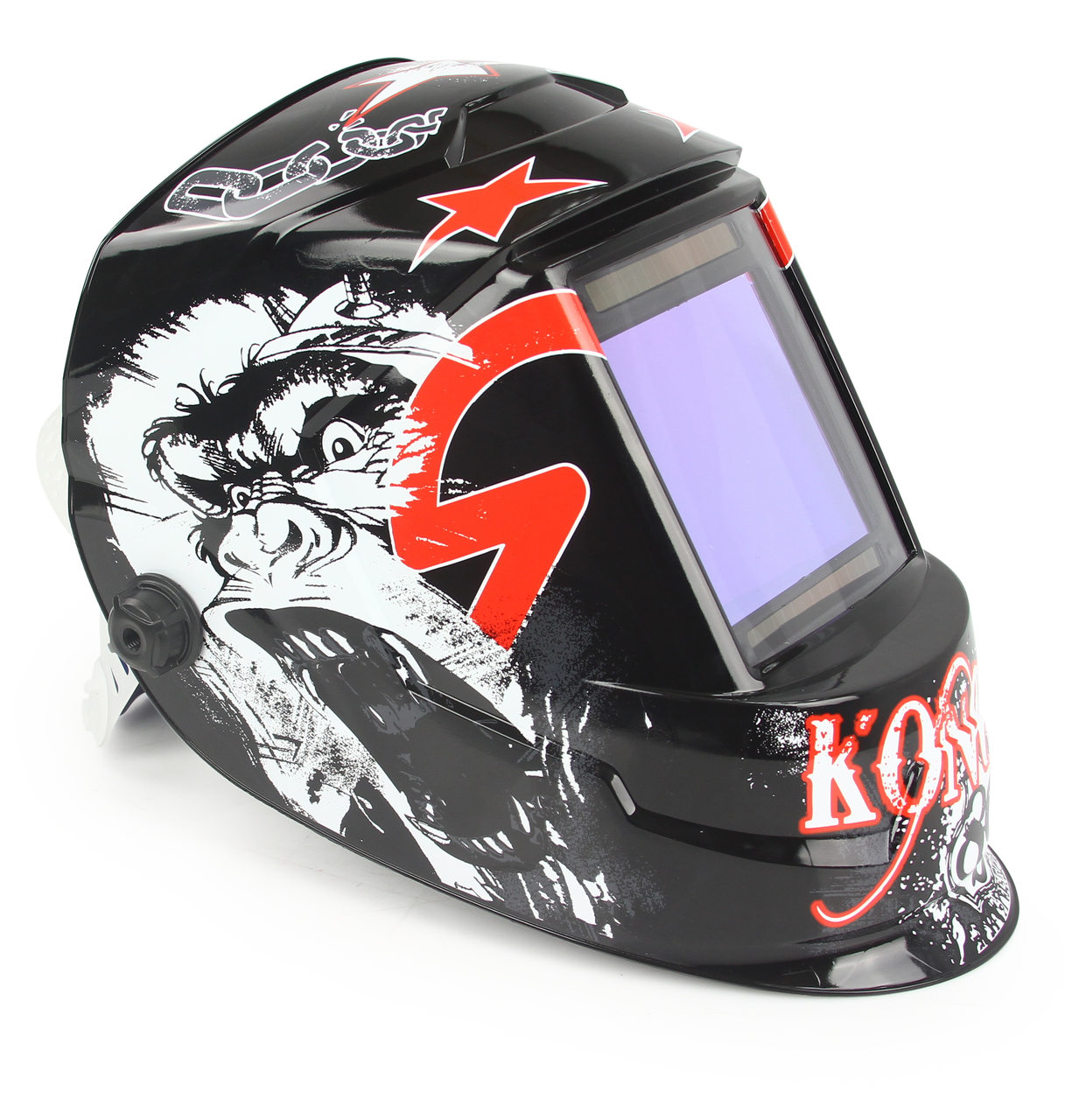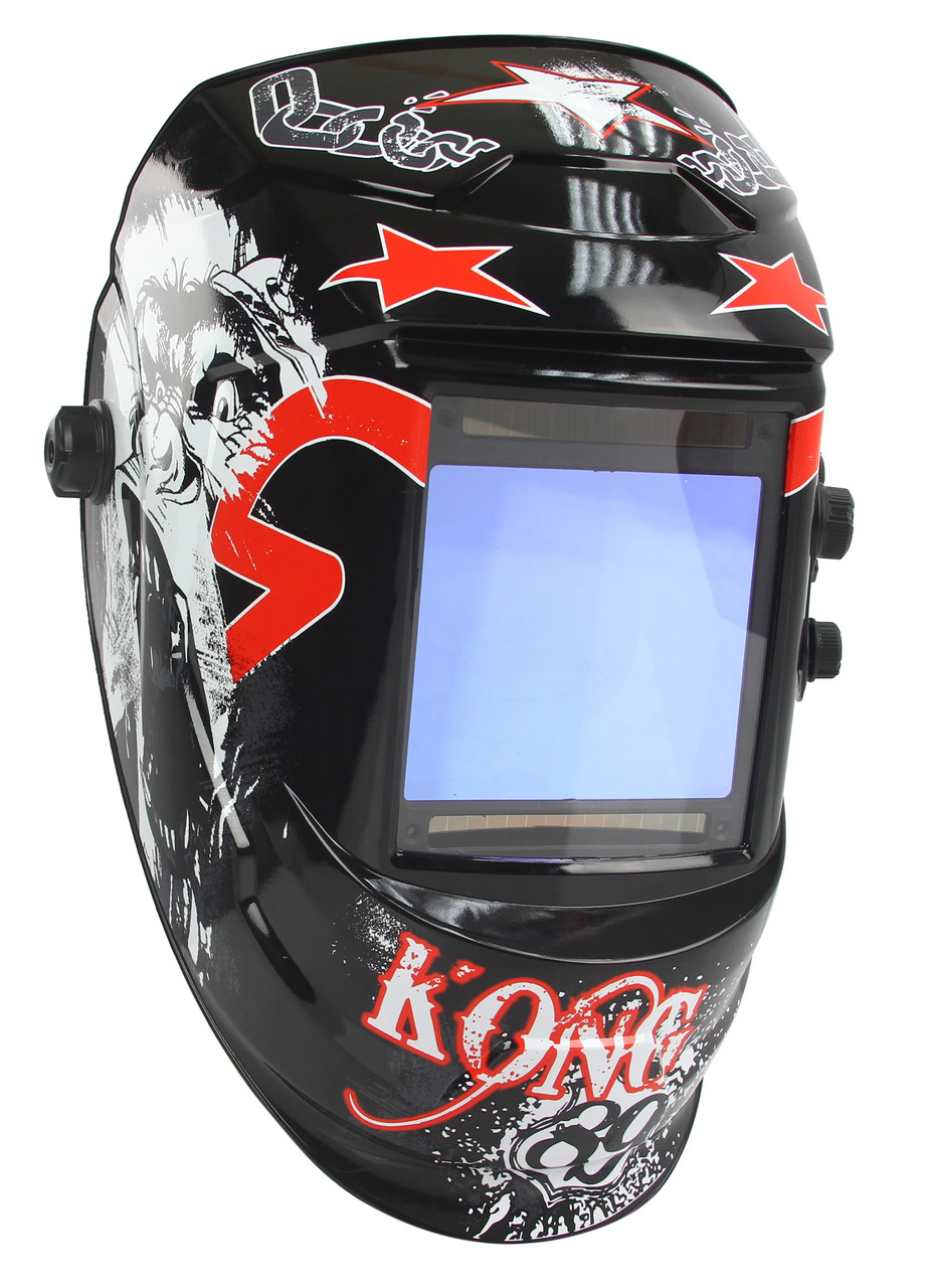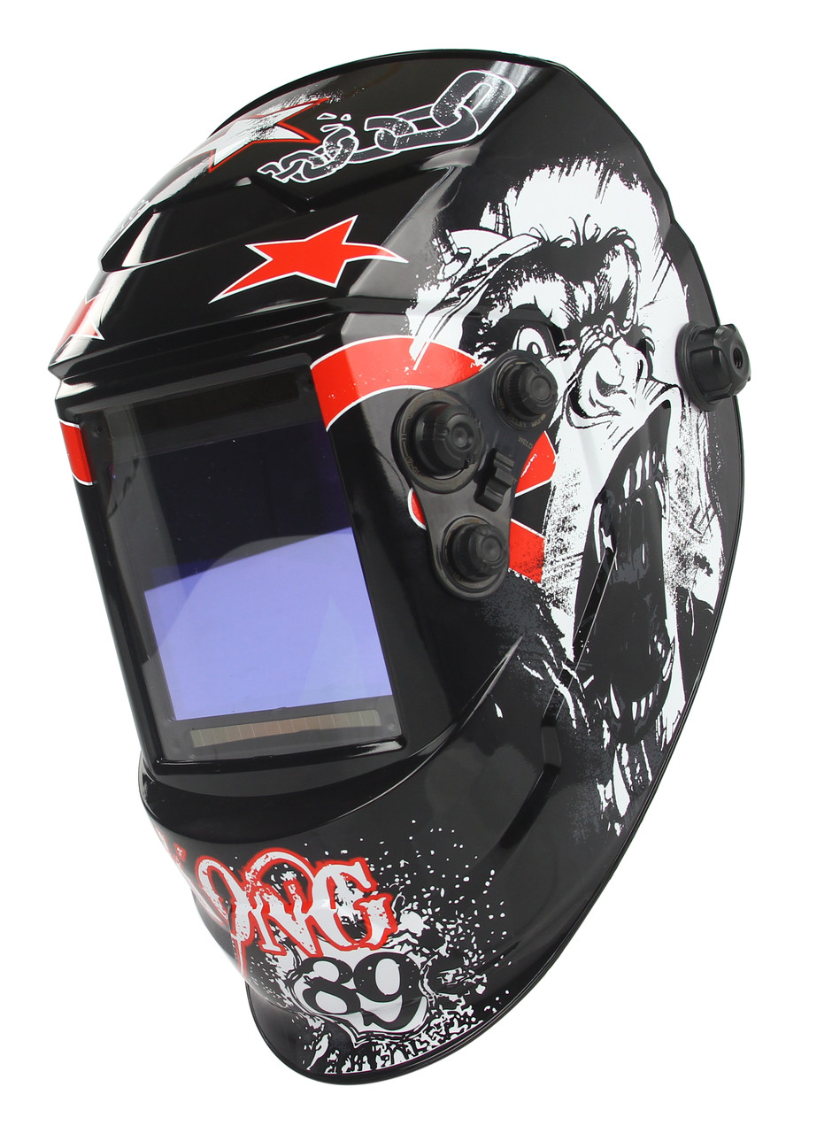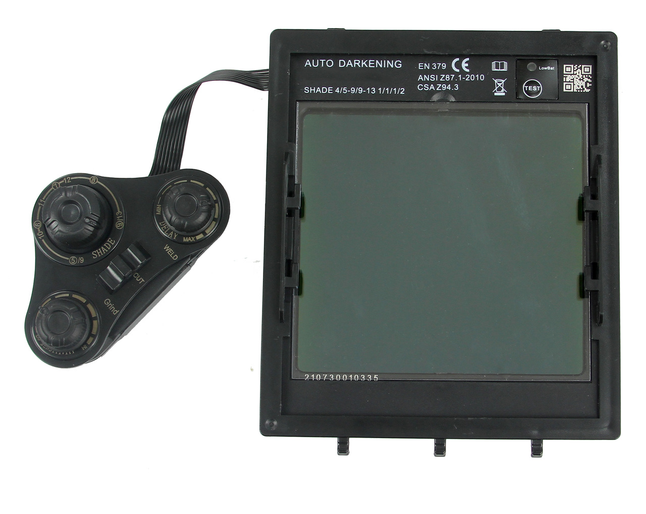 Automatyczna przyłbica wyposażona jest w filtr spawalniczy, który zmienia stopień zaciemnienia.