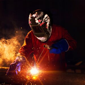 Przyłbica spawalnicza ze specjalistycznym filtrem spawalniczym, przeznaczona do większości procesów spawania m.in.
