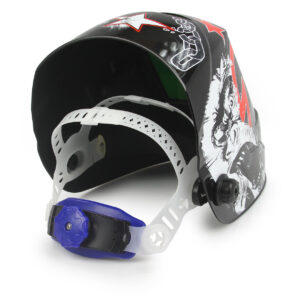 Automatyczna przyłbica wyposażona jest w filtr spawalniczy, który zmienia stopień zaciemnienia.