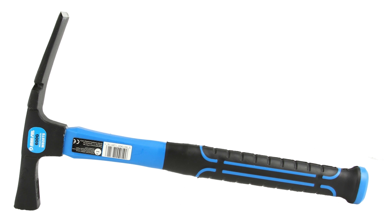 Bardzo mocny młotek murarski z trzonkiem wykonanym z Bi-materiału z elementami kauczuku termoplastycznego tłumiącego drgania. Antypoślizgowa rękojeść – pokryta gumą daje użytkownikowi maksymalny komfort pracy – pewny chwyt narzędzia.