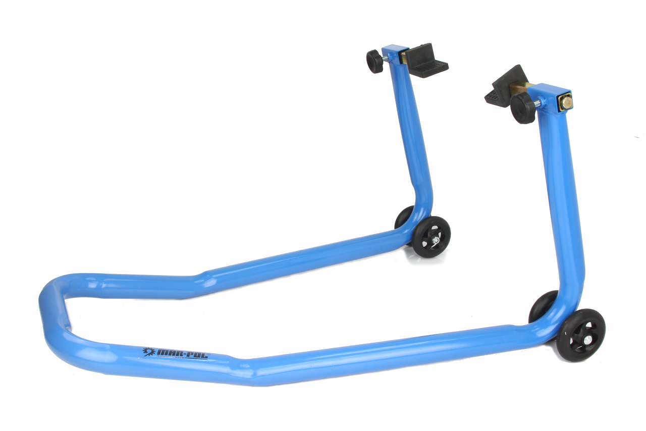 ✅Idealny do podstawowych czynności serwisowych, takich jak smarowanie, naciąg i konserwacja łańcucha, wymiana oleju, serwis opon, czyszczenie przedniej i tylnej felgi, zimowanie motocykla. Gumowe uchwyty uchronią wahacz od rys.