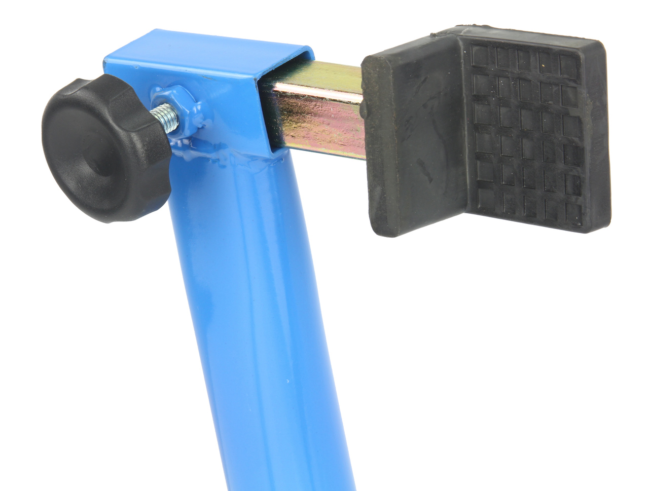 Stojak zapewnia stabilne podparcie motocykla, co minimalizuje ryzyko przewrócenia się maszyny podczas pracy.