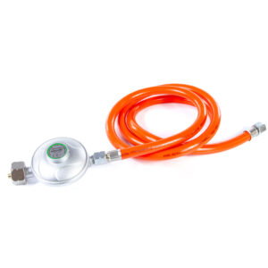 Nagrzewnicę wyposażono w wąż oraz reduktor dla kompleksowego działania.