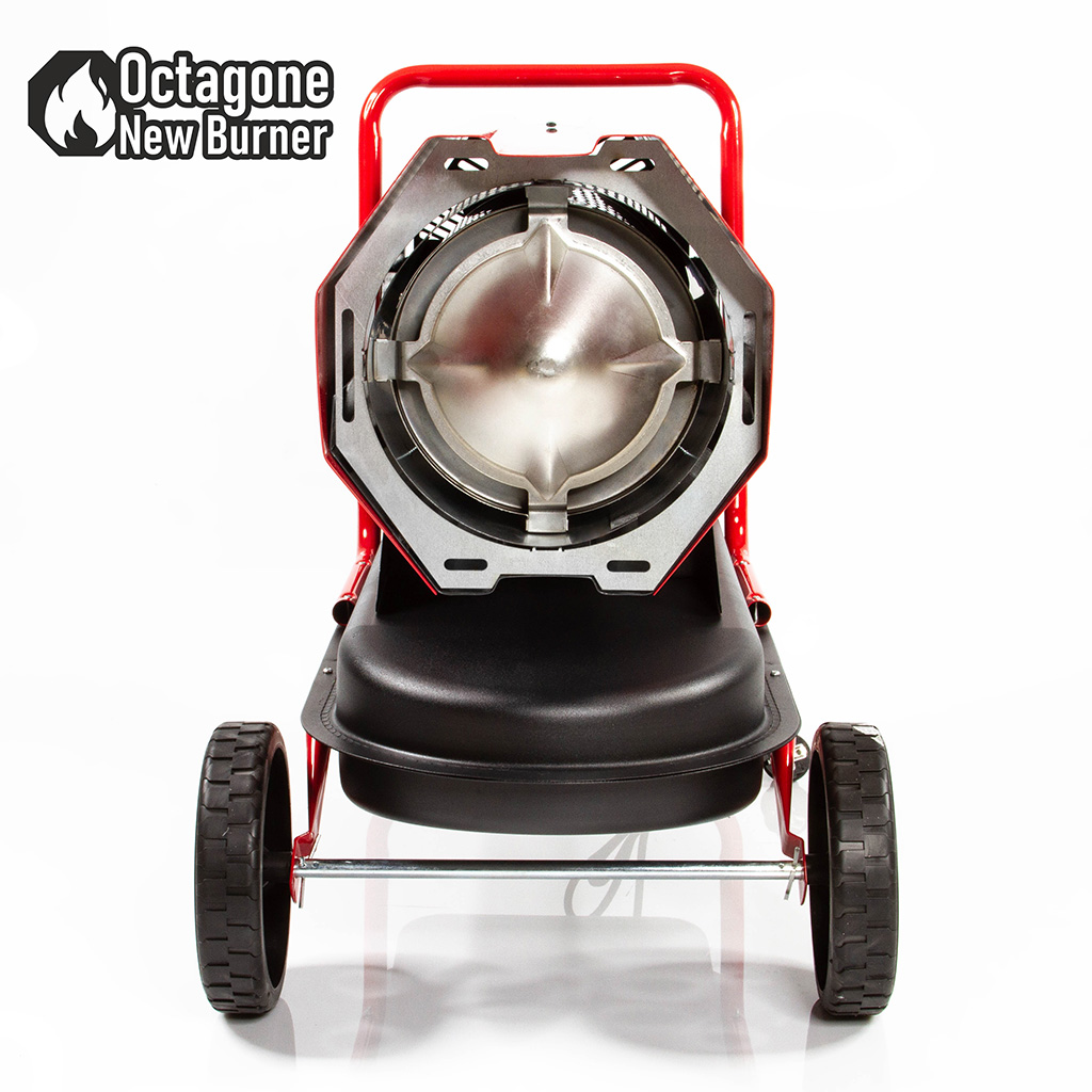 Dzięki otwartej komorze spalania uzyskujemy wysokie temperatury wydmuchu, pozwalające na bardzo szybkie nagrzanie obiektu