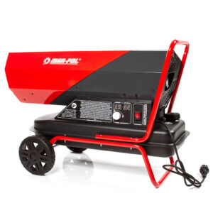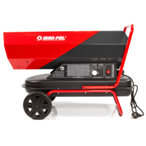 Mobilna nagrzewnica olejowa o mocy 40kW idealnie znajdzie swoje zastosowanie przy ogrzewaniu dużych pomieszczeń.