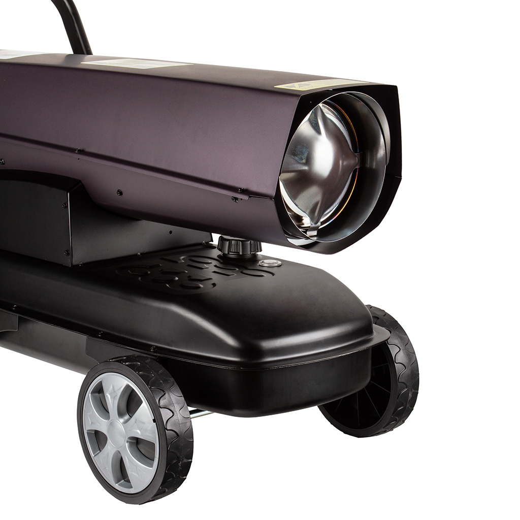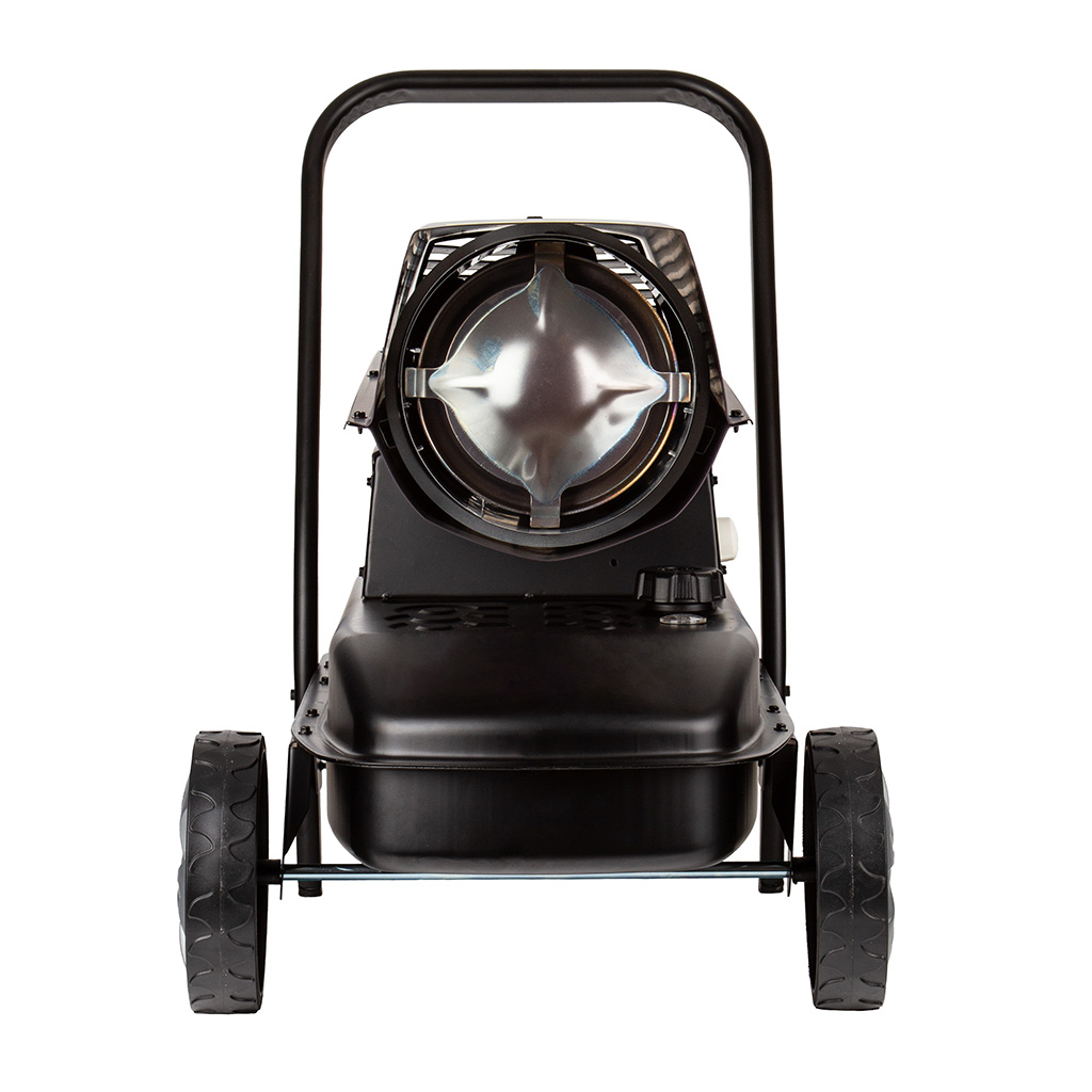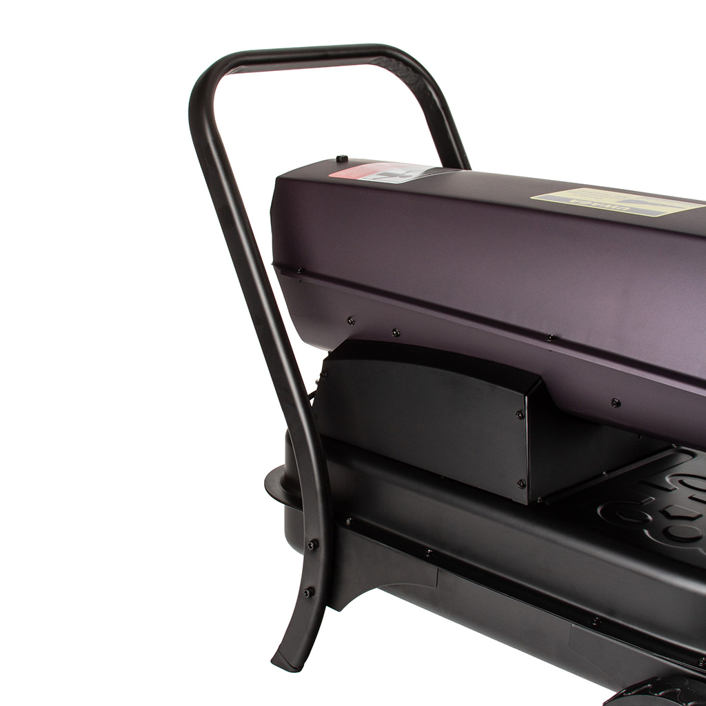 Solidna konstrukcja nagrzewnicy ze zintegrowanymi kołami i 38-litrowym zbiornikiem paliwa pozwala na szybką zmianę ogrzewanego miejsca. Nagrzewnica wyposażona w regulowany termostat, który zapewnia automatyzacje pracy urządzenia. Czytelny wskaźnik precyzyjnie informuje o pozostałej ilości paliwa w zbiorniku. Elektroniczny bezpiecznik płomienia i zintegrowane zabezpieczenie przed przegrzaniem zapewnia maksymalne bezpieczeństwo pracy.