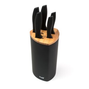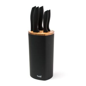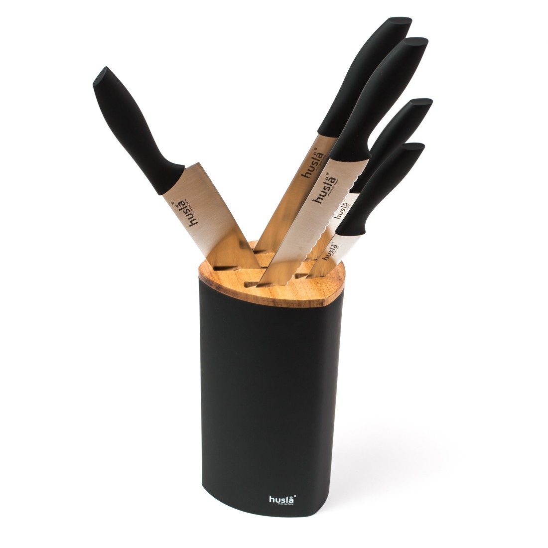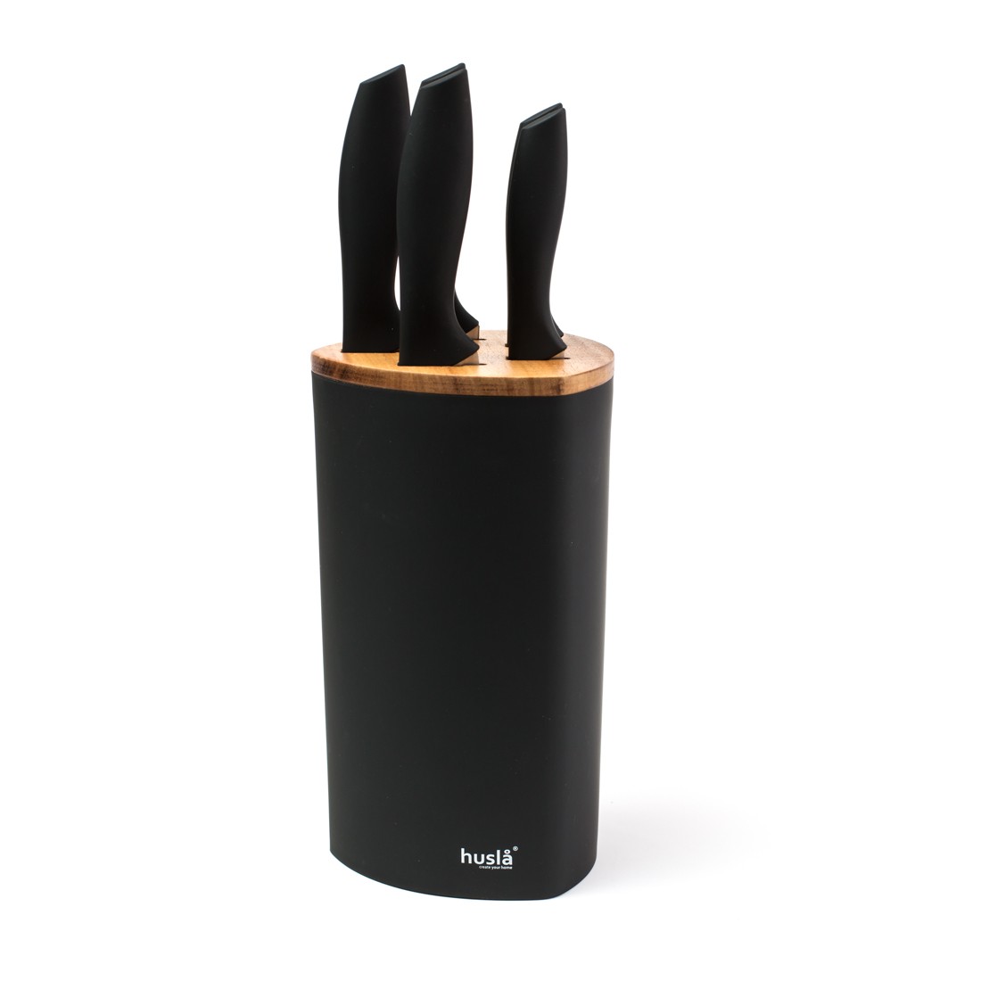 ZESTAW 5 NOŻY KUCHENNYCH W PLASTIKOWYM BLOKU Z AKACJOWĄ NAKŁADKĄ.