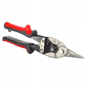 Nożyce do cięcia blachy , solidne ostrza nożyc, dodatkowo ząbkowane, co zapobiega ześlizgiwaniu się z ciętego materiału. Rękojeść o ergonomicznym kształcie zapewnia pewny i wygodny chwyt narzędzia. Nożyce posiadają mechanizm blokujący w pozycji zamkniętej. Specjalnie zaprojektowane rączki z miejscem na palec wskazujący oraz zaczep.