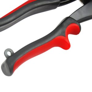 Nożyce do cięcia blachy , solidne ostrza nożyc, dodatkowo ząbkowane, co zapobiega ześlizgiwaniu się z ciętego materiału. Rękojeść o ergonomicznym kształcie zapewnia pewny i wygodny chwyt narzędzia. Nożyce posiadają mechanizm blokujący w pozycji zamkniętej. Specjalnie zaprojektowane rączki z miejscem na palec wskazujący oraz zaczep.