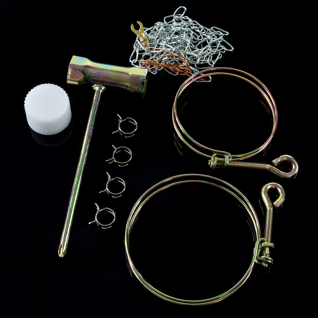 - Elementy niezbędne do złożenia opryskiwacza (przewody gumowe, zaciski, uszczelki itp.)