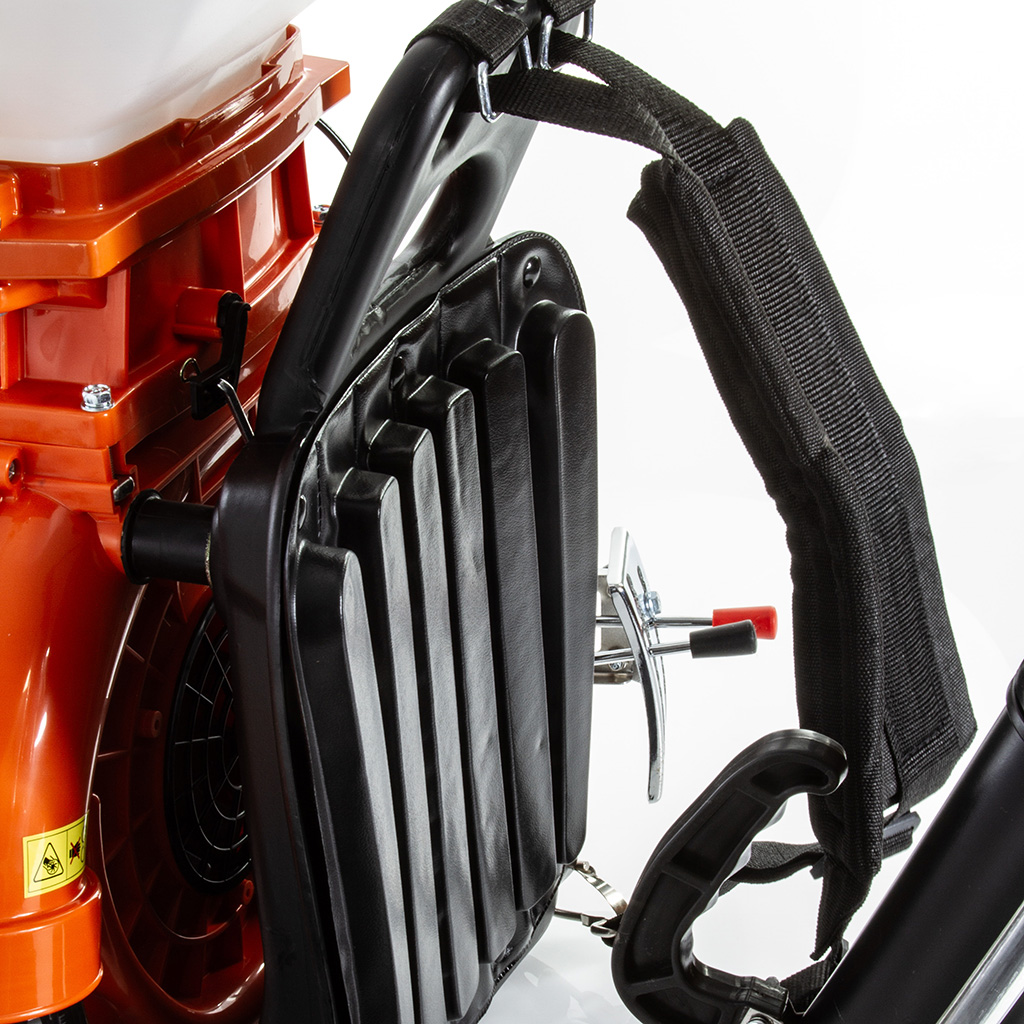 Nasz opryskiwacz oprócz amortyzatorów posiada bardzo miękkie mocowanie które wręcz otula plecy co jest bardzo bezpieczne i komfortowe.