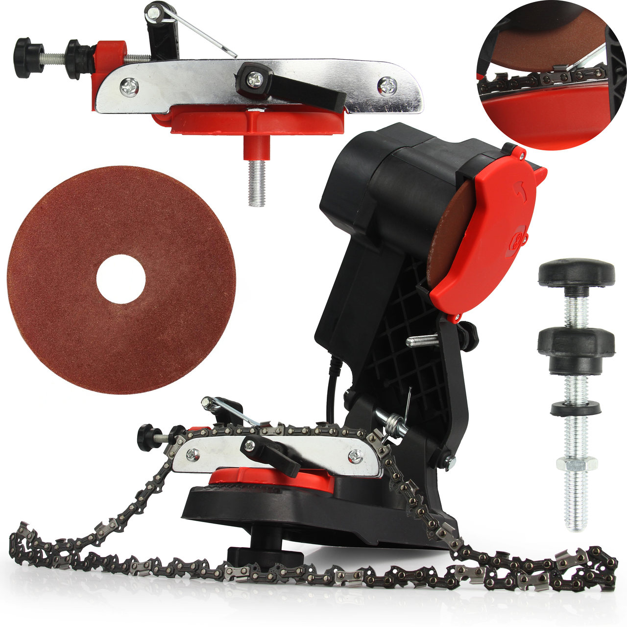 OSTRZAŁKA DO ŁAŃCUCHÓW PILAREK PIŁ ELEKTRYCZNA DO OSTRZENIA + TARCZA Zasilanie sieciowe