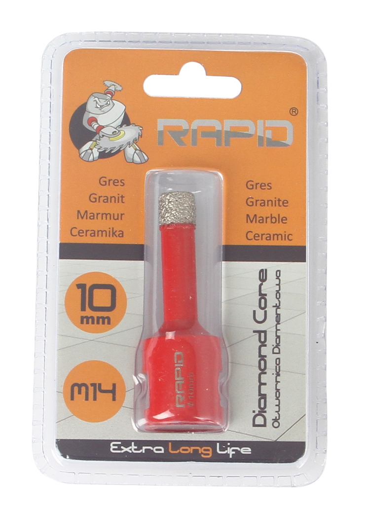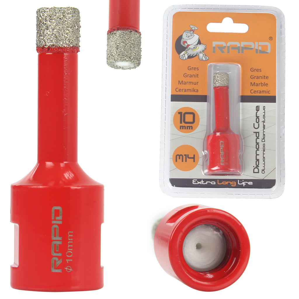 Otwornica RAPID do wiercenia na sucho. Dużą ich zaletą jest fakt, że każda otwornica pasuje też do każdej szlifierki z gwintem M14.