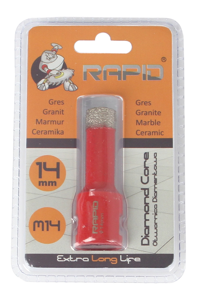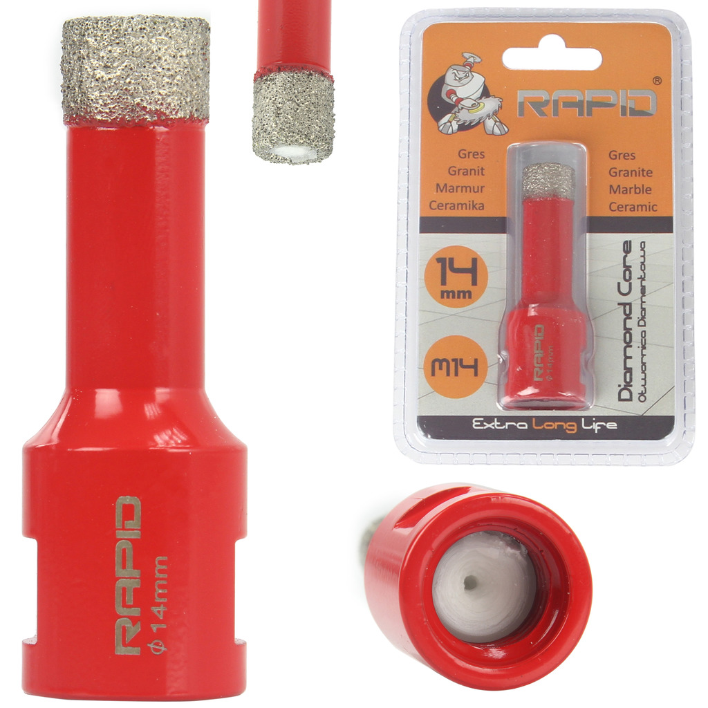 Otwornica RAPID do wiercenia na sucho. Dużą ich zaletą jest fakt, że każda otwornica pasuje też do każdej szlifierki z gwintem M14.