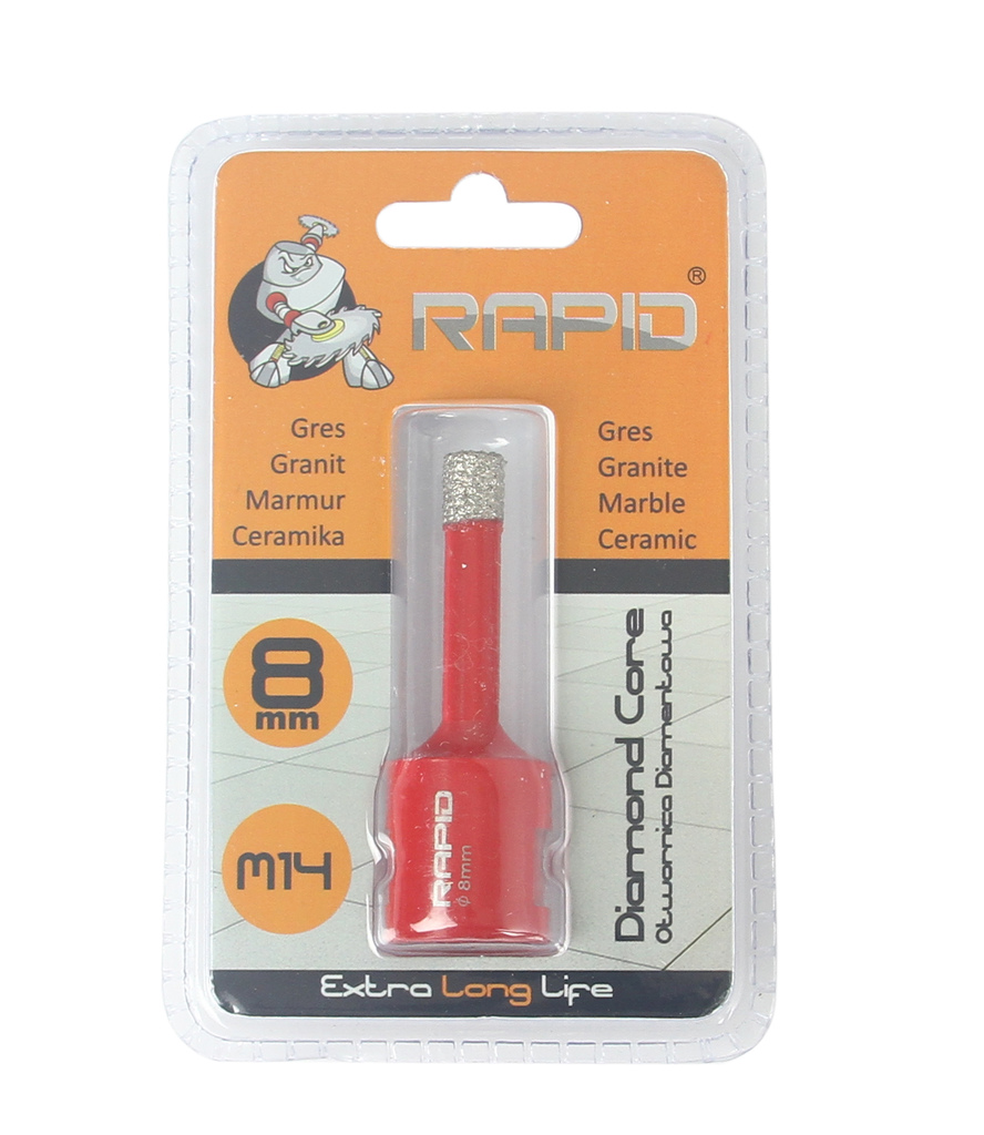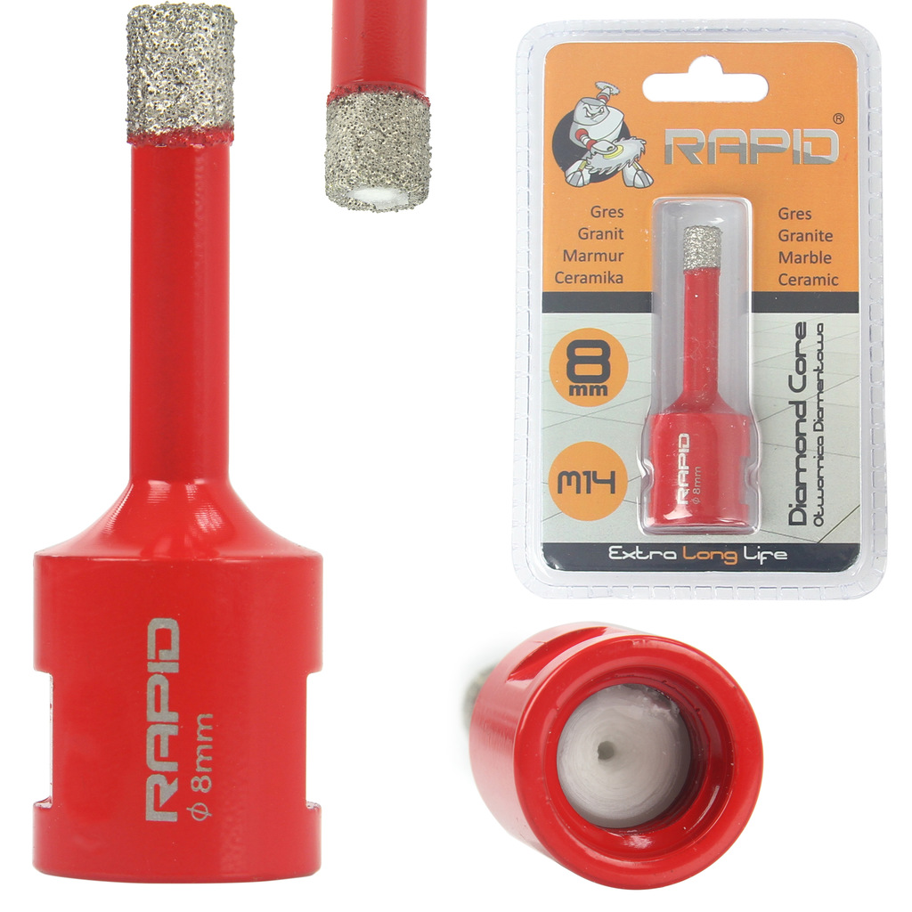 Otwornica RAPID do wiercenia na sucho. Dużą ich zaletą jest fakt, że każda otwornica pasuje też do każdej szlifierki z gwintem M14.