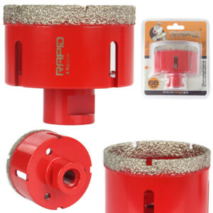 Wiercenie w przypadku koronek wolframowych RAPID odbywa się na sucho, a chłodzenie zapewniamy poprzez ruchy orbitalne, czyli ustawiamy otwornicę na materiale i rozpoczynamy wiercenie lekko pod kątem lub przy prowadnicy.