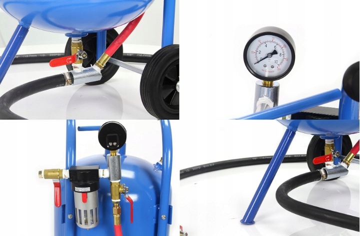PIASKARKA SYFONOWA DO PIASKOWANIA MOBILNA 76L + PISTOLET +DYSZE +WĄŻ ZESTAW Pojemność 76 l