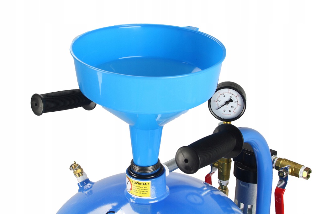 W piaskarce na końcu przewodu wlotowego znajduje się dobrze widoczny na szczycie zbiornika manometr z odwadniaczem ,