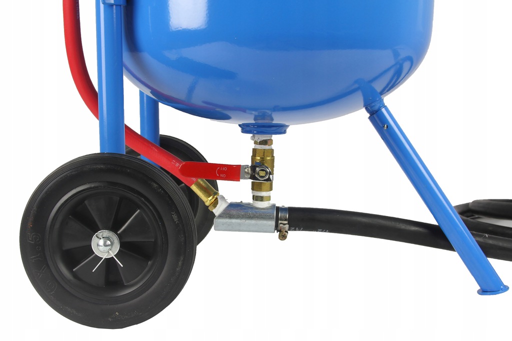 Piaskarka została wyposażona w gumowe kółka jezdne oraz wygodne rączki ułatwiające jej przemieszczanie i zwiększające komfort pracy operatora urządzenia.