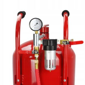 Piaskarka 38 L MAR-POL została dopracowania w każdym detalu przez inżynierów aby sprostać oczekiwania każdego użytkownika, dlatego piaskarka została DODATKOWO wyposażona w manometr z odwadniaczem powietrza i regulatorem.