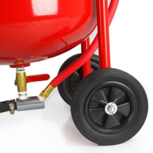 Piaskarka została wyposażona w gumowe kółka jezdne oraz wygodne rączki ułatwiające jej przemieszczanie i zwiększające komfort pracy operatora urządzenia.