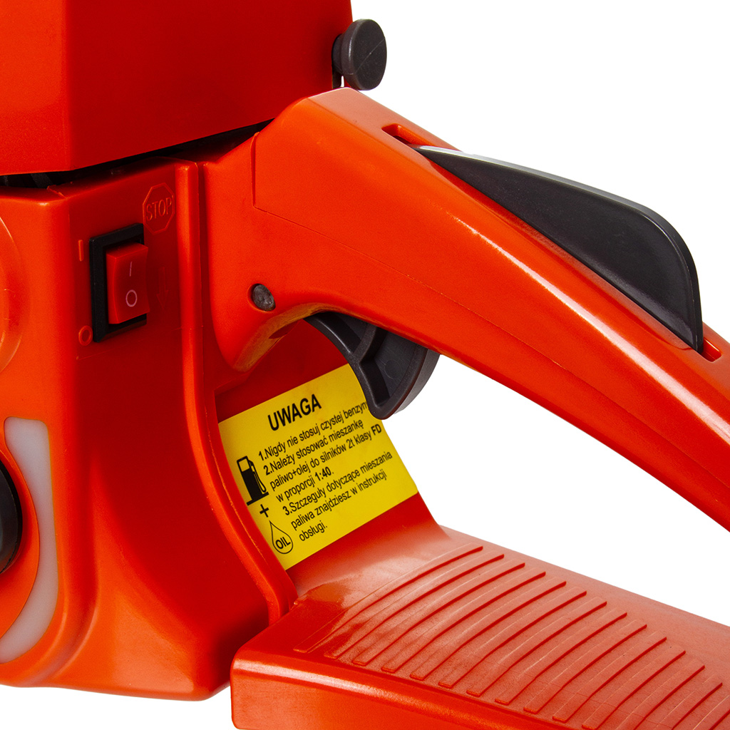 system hamulcowy. Dwusuwowy silnik spalinowy chłodzony powietrzem gwarantuje, że sprzęt nie będzie się przegrzewał.