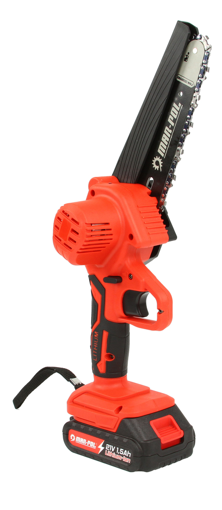 Dwa akumulatory o mocy 21V zapewniają odpowiedni czas użytkowania pilarki