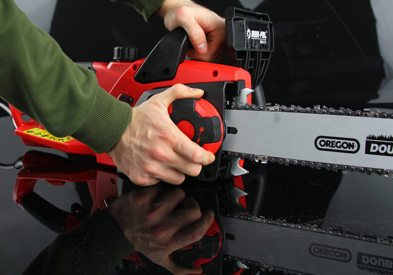 Model wyposażony w system SDS – naciąg i regulacja naprężenia łańcucha tnącego nie wymaga użycia żadnych narzędzi.