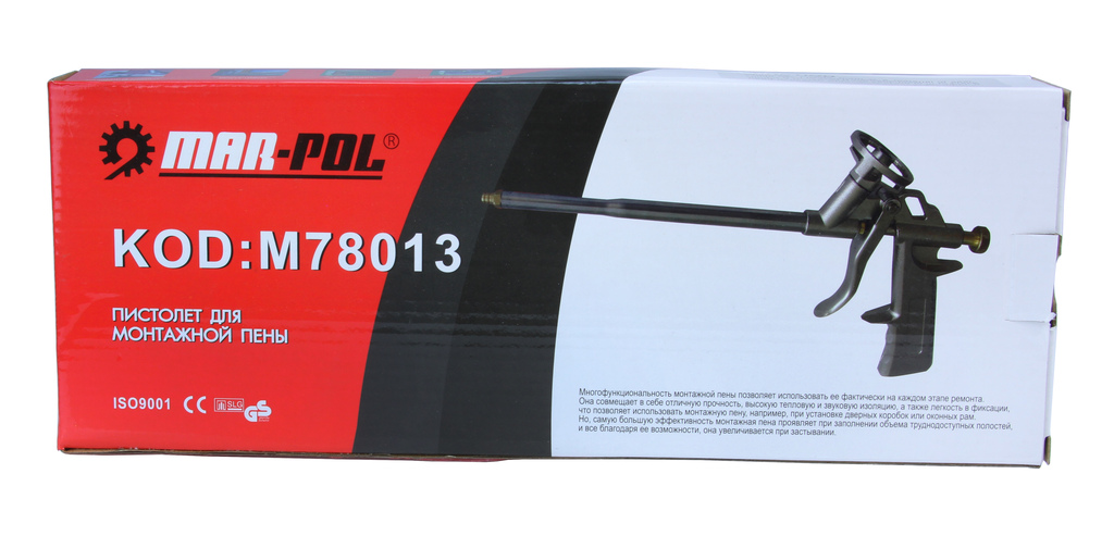 Pokryty został warstwą teflonu, co zapobiega przyklejaniu się do niego pianki. Pistolet wyposażony został w pokrętło umożliwiające precyzyjnie dozowanie pianki.