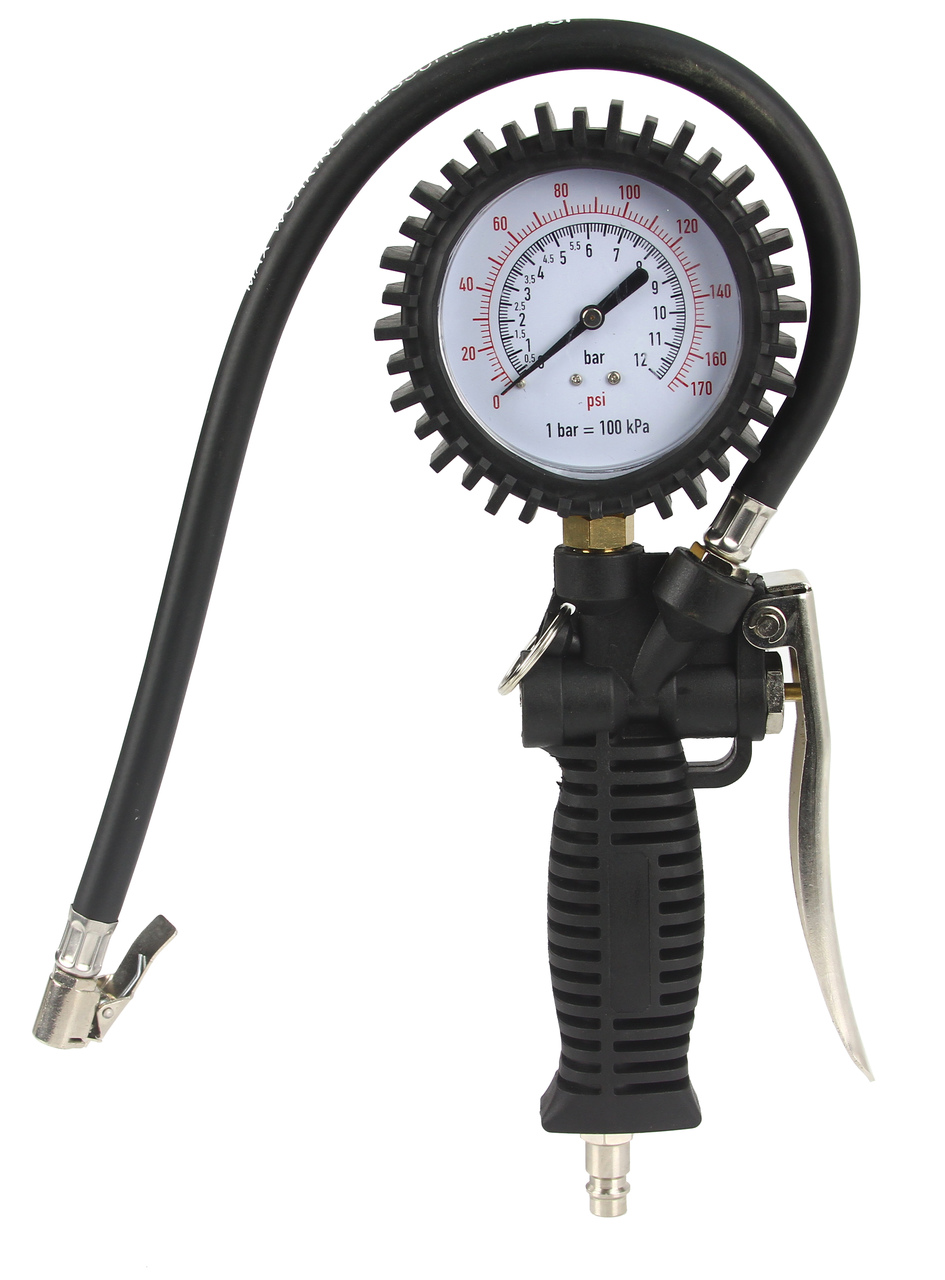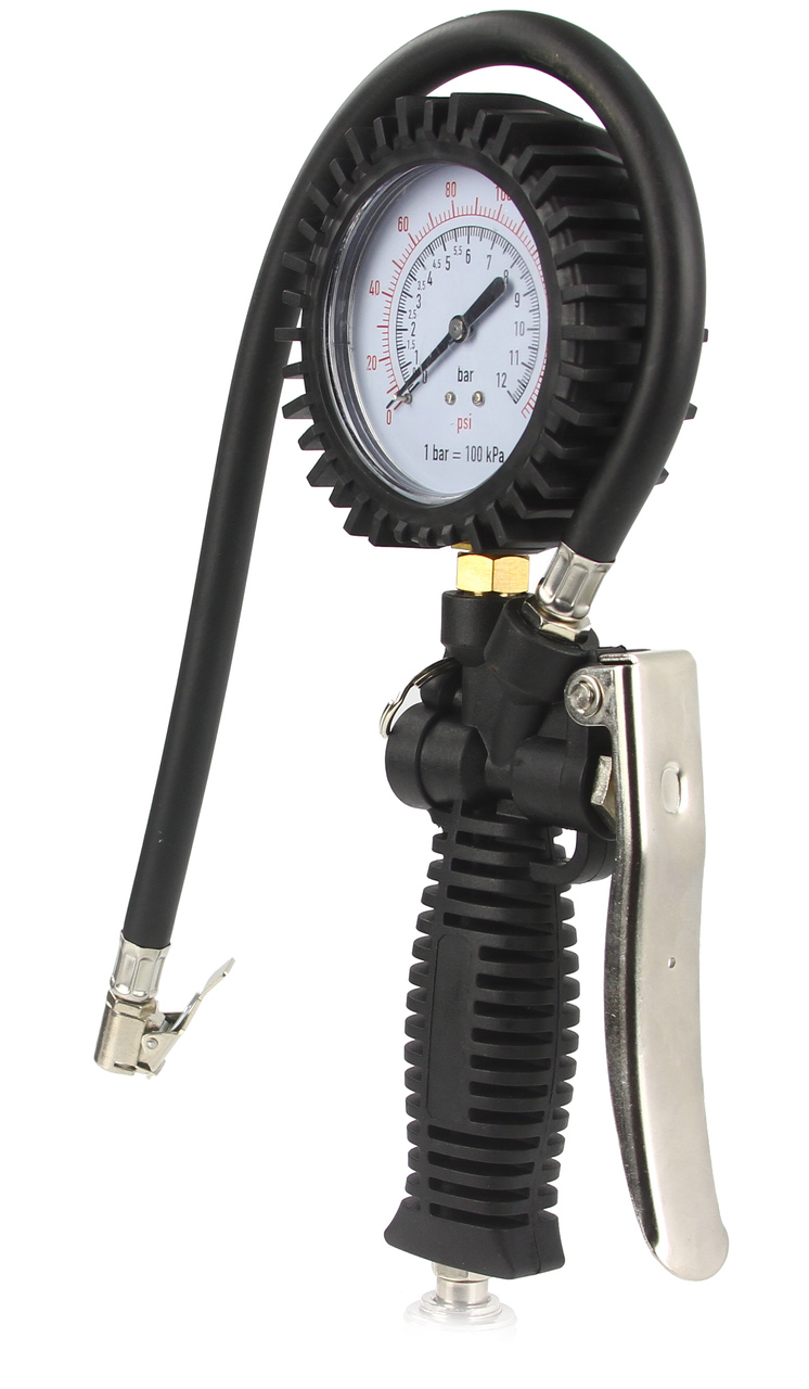 Manometr, w który jest wyposażony, ma skalę pozwalającą mierzyć ciśnienie do 12 barów. Ponad to manometr ten jest zaopatrzony w osłonę ochronną zapobiegającą uszkodzeniom. Manometr mocowany jest do korpusu pistoletu za pomocą metalowego standardowego gwintu pozwalającego na wymianę go na nowy (w przypadku uszkodzenia).
