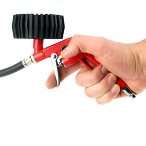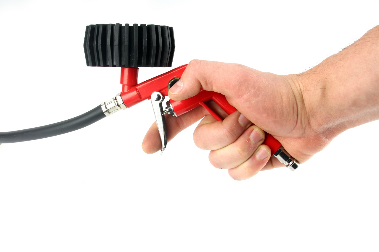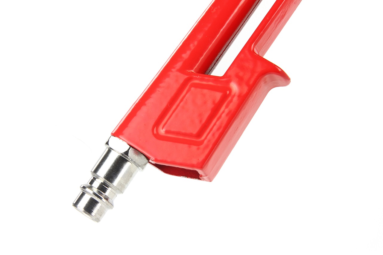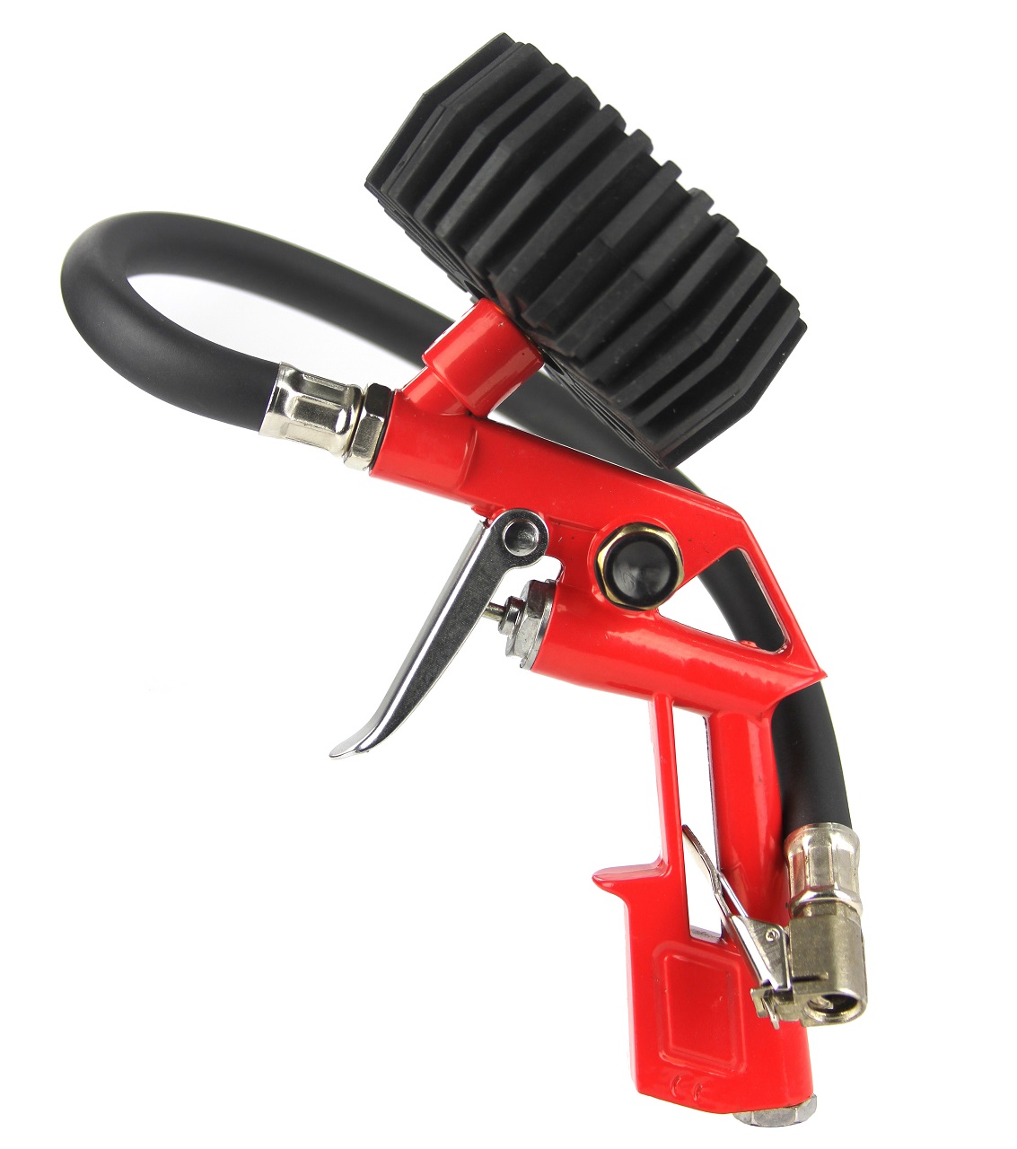 Pistolet wyposażony jest w manometr, który umożliwia kontrolę ciśnienia powietrza w pompowanym produkcie oraz aluminiowy korpus.