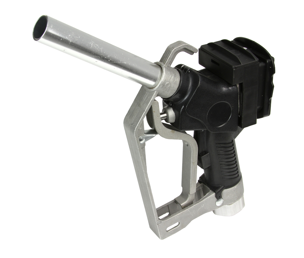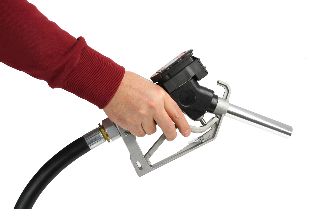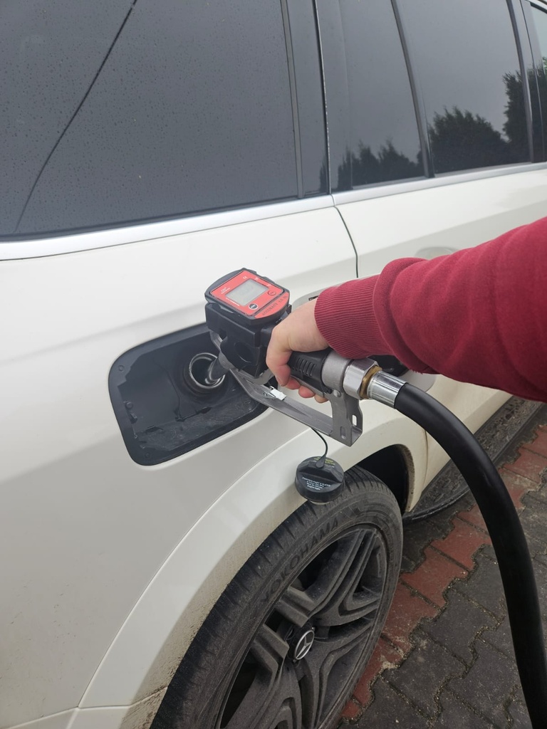 Nowoczesny pistolet do paliwa wyposażony w elektroniczny miernik przepływu (z dokładnością +/- 0.2%) przeznaczony do użytku w: