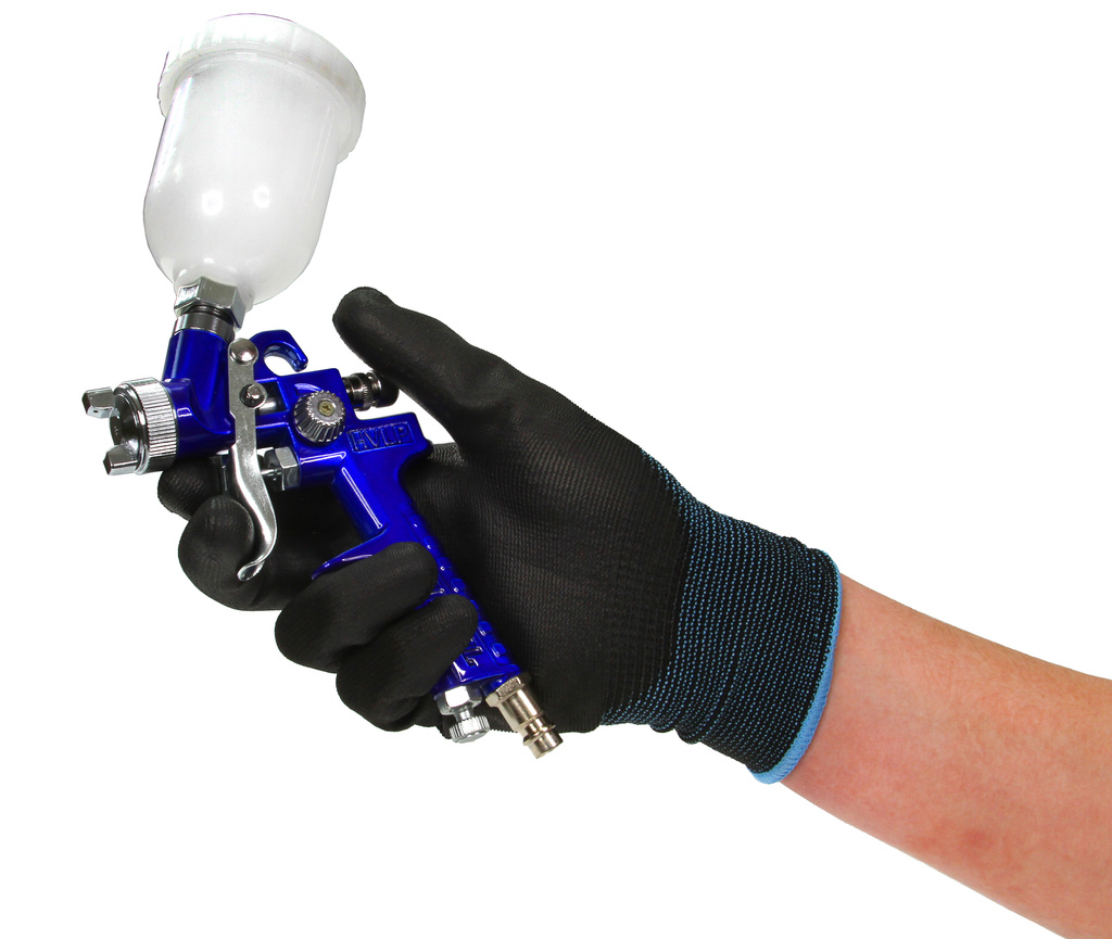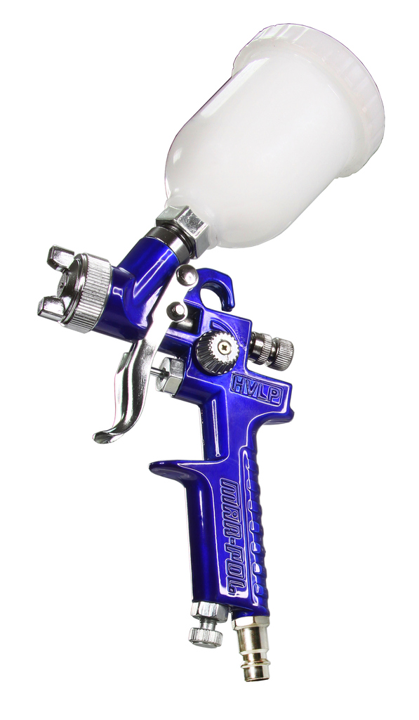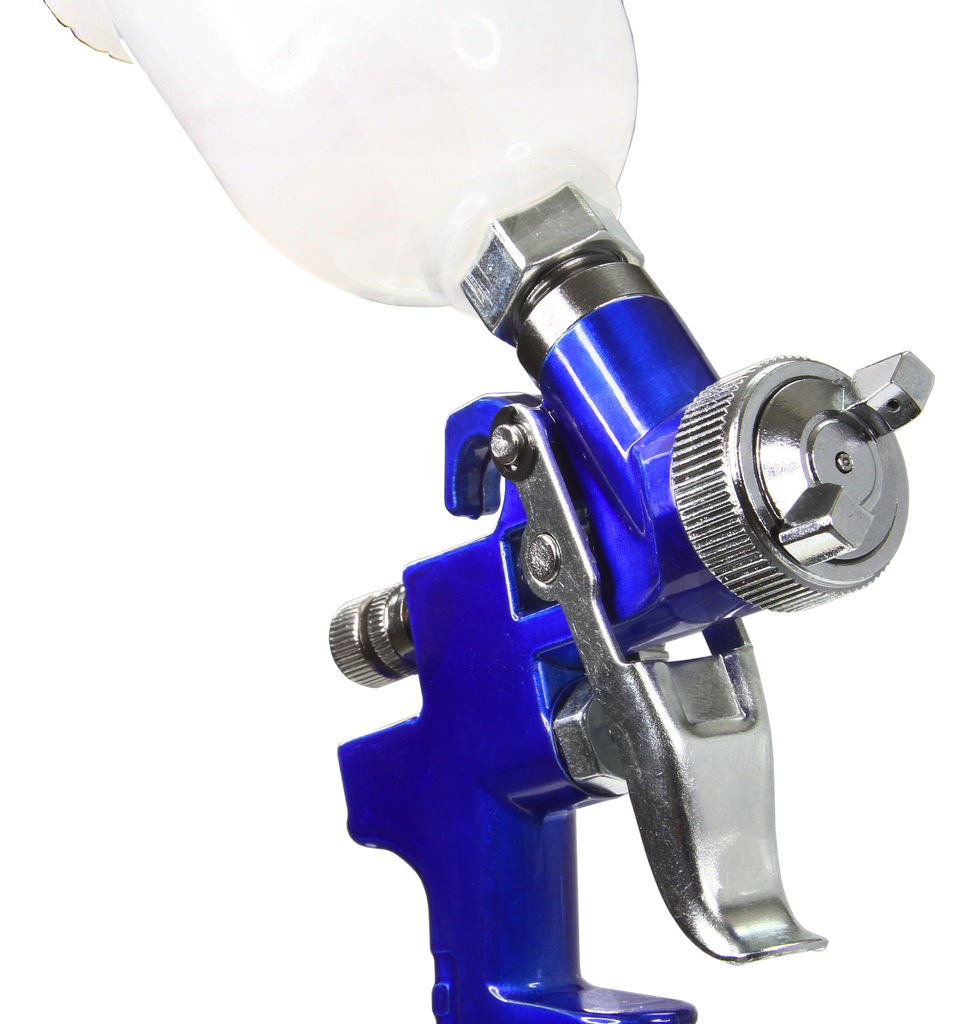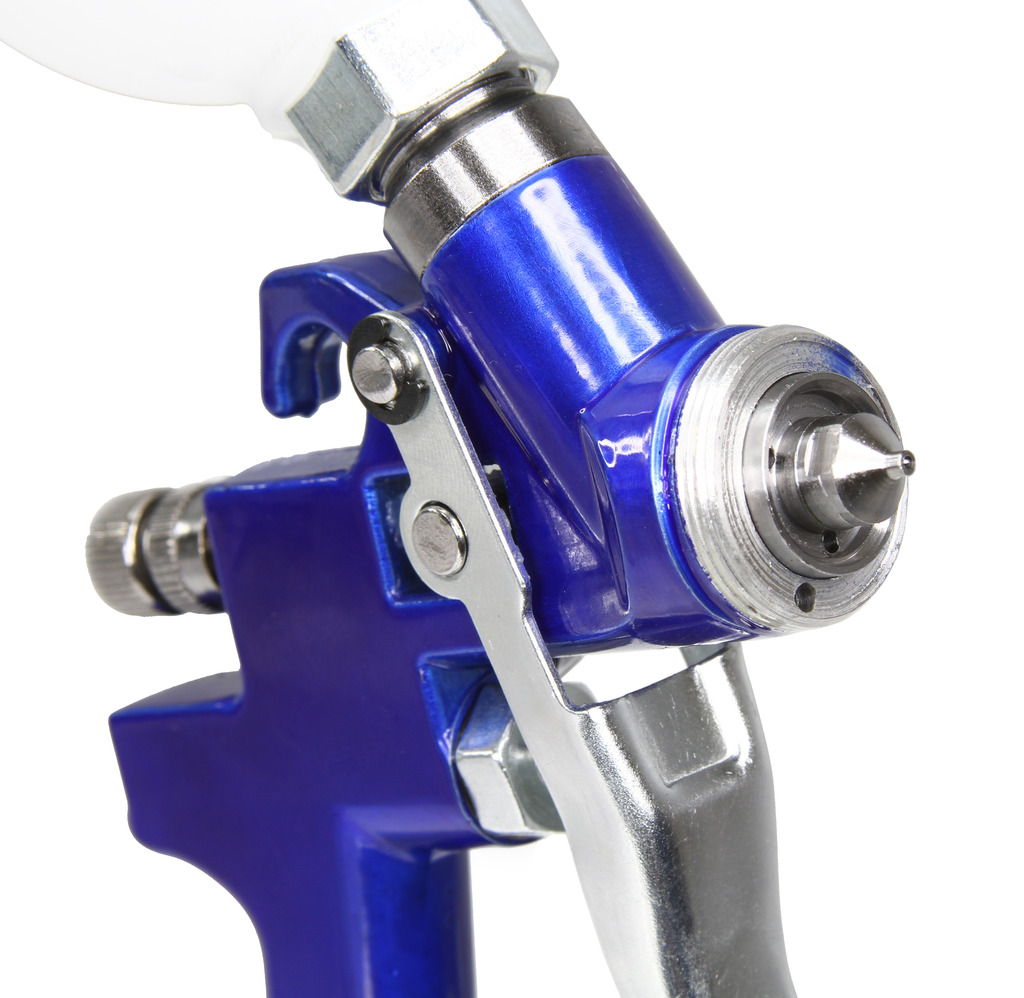 Wysokiej jakości pistolet lakierniczy wyposażony w trzy regulacje: powietrza, farby i strumienia. Pistolet zaopatrzony jest w niezależny mechanizm uruchamiania powietrza i farby. Dzięki takiemu rozwiązaniu po lekkim naciśnięciu spustu z dyszy wydostaje się sprężone powietrze, a następnie po zwiększeniu nacisku na spust farba. Ma to duży wpływ na na jakość malowania.